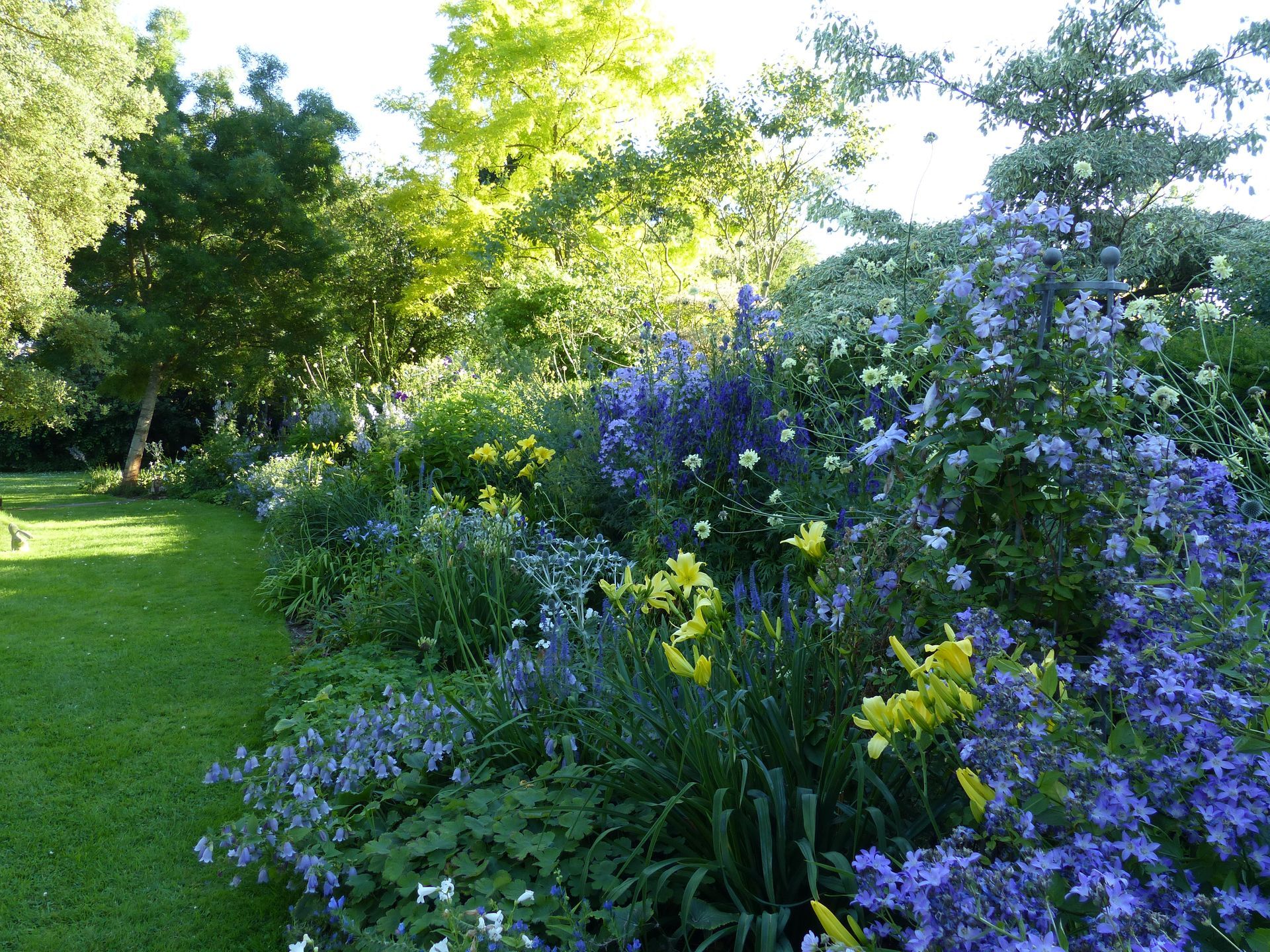 "A magnificent blue border of delicate shades, threaded through with yellow and white."